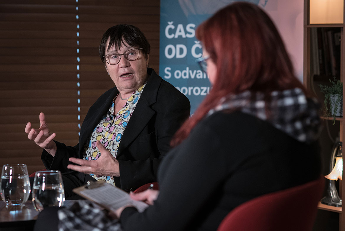 Pak si vzpomínám, že se v roce 1990 začali objevovat první viditelní bezdomovci. Ne, že by před rokem `89 nebyli lidé bezdomova. Byli. A často končili ve vězení. Ale bylo jich mnohem a mnohem méně, samozřejmě. Tehdy se tento fenomén začal objevovat, protože byly rušeny například ubytovny při fabrikách. Společnost byla ve velkém pohybu. Na ubytovnách léta přežívali muži, kteří dost často neměli rodiny, pracovali a bydleli tam. To byl v mých očích první krach novodobých poměrů. Dělala jsem dokonce anketu ve všech okresech a začala jsem si všímat věcí, které mi sympatické nebyly. Přestože jsem byla zásadní kritičkou minulého režimu. Byl to vhled do nové situace. A už mi zůstal. I nadále jsem si všímala sociálních věcí, jak společnost funguje… Začala jsem nabývat nový kriticismus. Jsem ráda, že jsme v demokratickém rámci, ale jsem kritická k celé řadě věcí v současné společnosti.